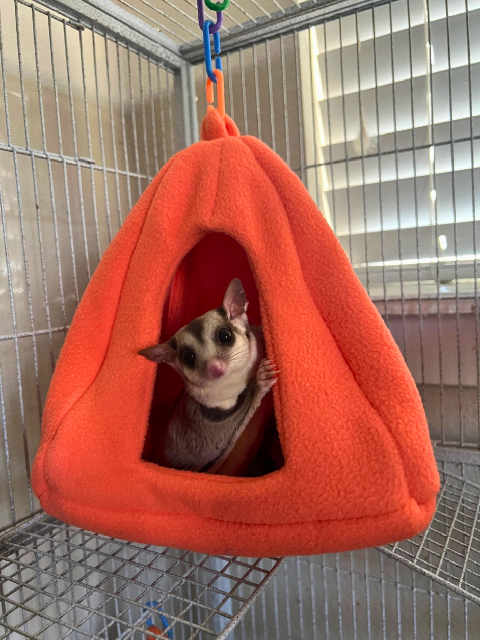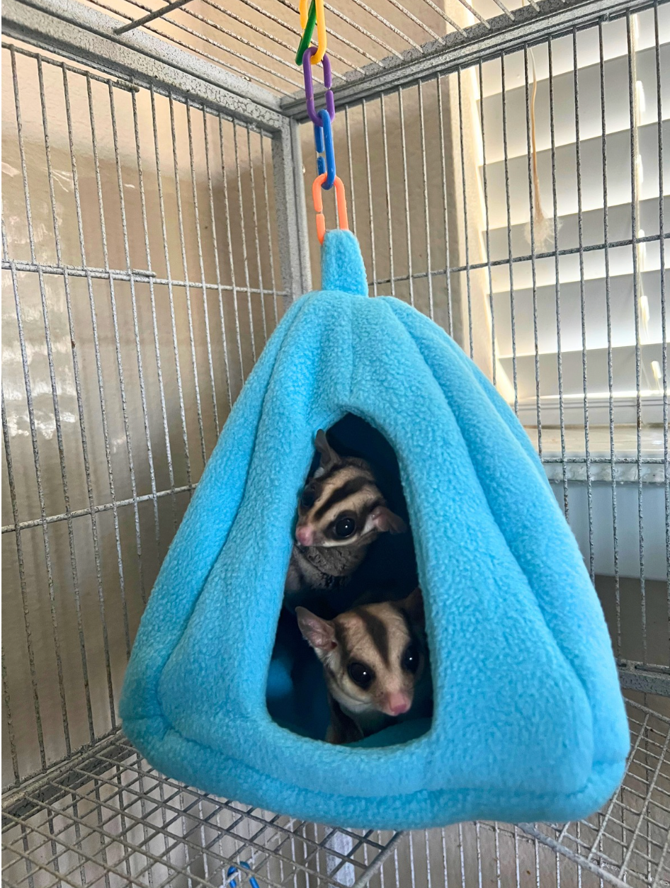 Introducing the ultimate cuddle haven for your sugar glider squad! Our Large Hanging Beds are spacious enough to accommodate multiple gliders, making them perfect for those adorable pile-up sessions your little ones crave. Crafted with soft, secure materials, these beds provide a cozy retreat for daily lounging and serious nap marathons. Pair with our Bonding Fleece to create a familiar, comforting scent that keeps your gliders feeling safe and connected to you. Whether your gliders are professional snugglers or casual nappers, this hanging bed transforms any cage into a bonding paradise. Watch your gliders melt into relaxation—because sometimes the best moments happen when everyone's piled together.